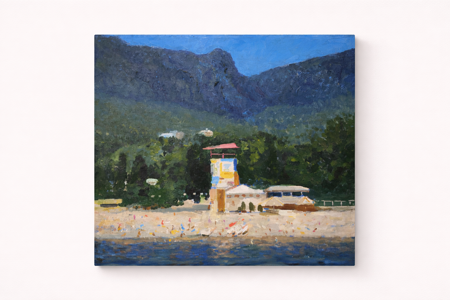 Картина передает ощущение тепла, отдыха и гармонии с природой, что делает её привлекательной для любителей морских пейзажей и поклонников живописного искусства.